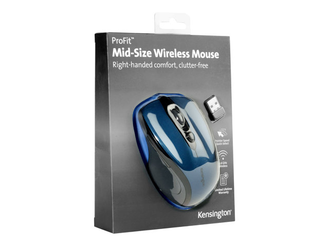 Kensington Pro Fit Mid-Size - Hiiri - oikeakätinen - optinen - langaton - 2.4 GHz - USB johdoton vastaanotin - safiirinsininen