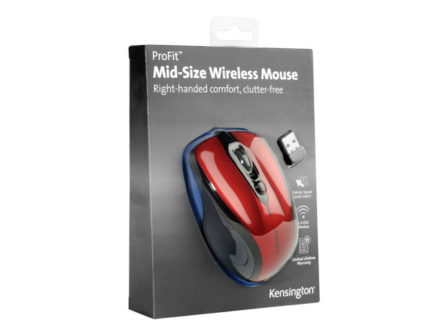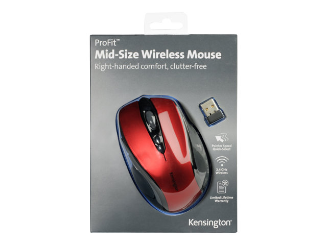 Kensington Pro Fit Mid-Size - Hiiri - oikeakätinen - optinen - langaton - 2.4 GHz - USB johdoton vastaanotin - Rubiinin punainen