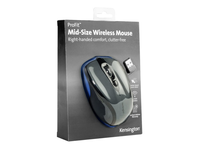 Kensington Pro Fit Mid-Size - Hiiri - oikeakätinen - optinen - 5 painiketta - langaton - 2.4 GHz - USB johdoton vastaanotin - grafiitin harmaa