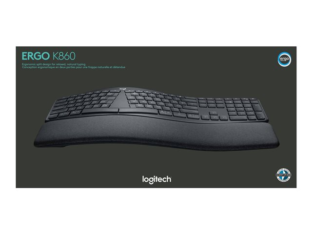 Logitech ERGO K860 - Näppäimistö - langaton - 2.4 GHz, Bluetooth 5.0 - pohjoismainen