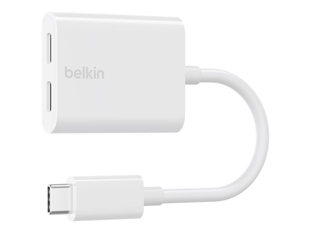 Belkin Connect Audio + Charge - USB-C - USB-C -kuuloke-/lataussovitin - 24 pin USB-C uros to 24 pin USB-C naaras - 14 m - valkoinen - USB Power Delivery (60W)