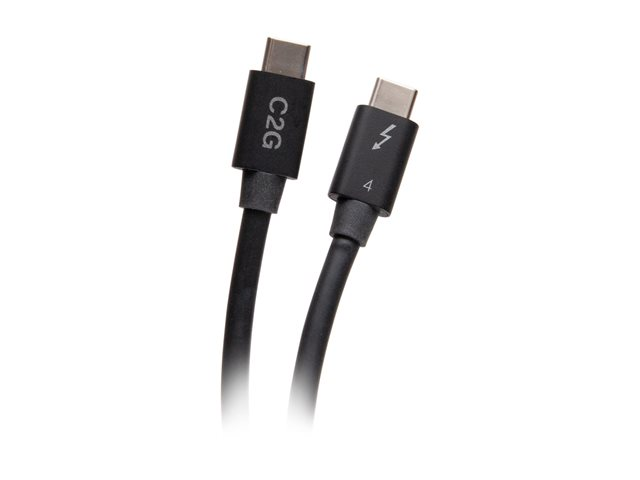 C2G 2.5ft Thunderbolt 4 USB C Cable - USB C to USB C - 40Gbps - M/M - Thunderbolt-kaapeli - 24 pin USB-C (uros) to 24 pin USB-C (uros) - USB 3.2 / DisplayPort 2.1 / Thunderbolt 4 - 30 V - 76 cm - 4K 60Hz (4096 x 2160) -tuki, USB-virransyöttö (100 W), tuki 8K 60 Hz, ethernet-tuki - musta