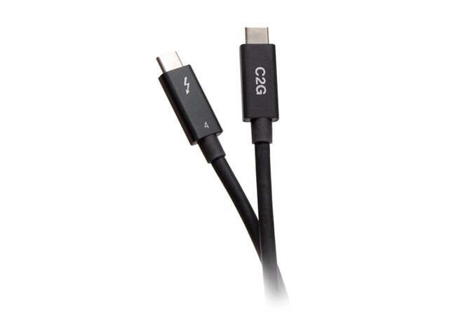 C2G 2.5ft Thunderbolt 4 USB C Cable - USB C to USB C - 40Gbps - M/M - Thunderbolt-kaapeli - 24 pin USB-C (uros) to 24 pin USB-C (uros) - USB 3.2 / DisplayPort 2.1 / Thunderbolt 4 - 30 V - 76 cm - 4K 60Hz (4096 x 2160) -tuki, USB-virransyöttö (100 W), tuki 8K 60 Hz, ethernet-tuki - musta