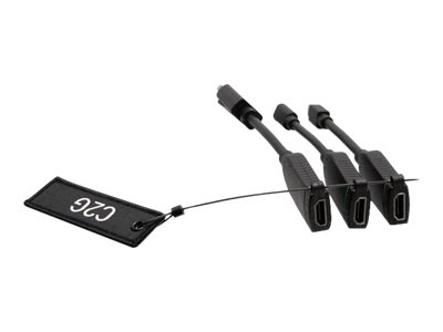 | Sisältyvä määrä x Tyyppi | Näyttösovitin - Mini DisplayPort (uros) to 19-nastainen HDMI A-tyyppi (naaras) Näyttösovitin - 20 nastan näyttöporttiliitin (uros) to 19-nastainen HDMI A-tyyppi (naaras) Näyttösovitin - 24-nastainen USB-C (uros) to 19-nastainen HDMI A-tyyppi (naaras) |
