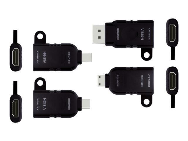 | Sisältyvä määrä x Tyyppi | HDMI-sovitin - 19-nastainen mini HDMI Tyyppi C (uros) to 19-nastainen HDMI A-tyyppi (naaras) Näyttösovitin - Mini DisplayPort (uros) to 19-nastainen HDMI A-tyyppi (naaras) Näyttösovitin - 20 nastan näyttöporttiliitin (uros) to 19-nastainen HDMI A-tyyppi (naaras) Näyttösovitin - 24-nastainen USB-C (uros) to 19-nastainen HDMI A-tyyppi (naaras) |