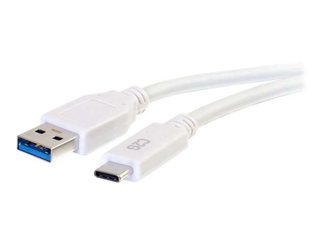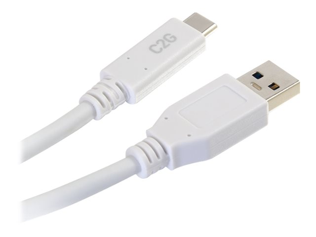 C2G 10ft USB C 3.0 to USB Cable - USB C to USB A - M/M - USB-kaapeli - USB Type A (uros) to 24 pin USB-C (uros) - USB 3.1 - 30 V - 3 A - 3.05 cm - valkoinen