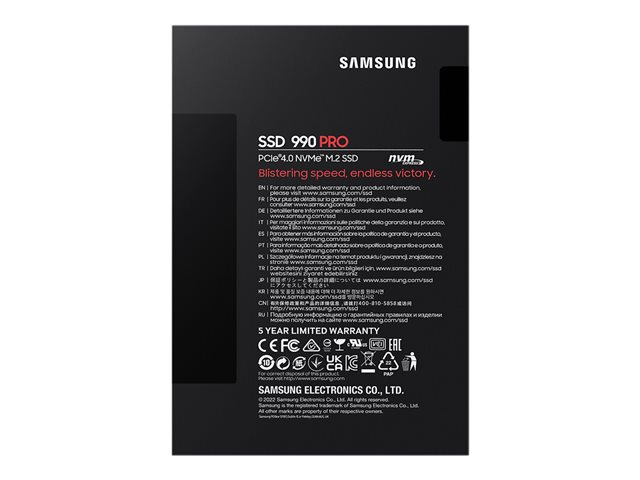 Samsung 990 PRO MZ-V9P2T0BW - SSD - salattu - 2 Tt - sisäinen - M.2 2280 - PCIe 4.0 x4 (NVMe) - AES 256 bittiä - TCG Opal Encryption 2.0