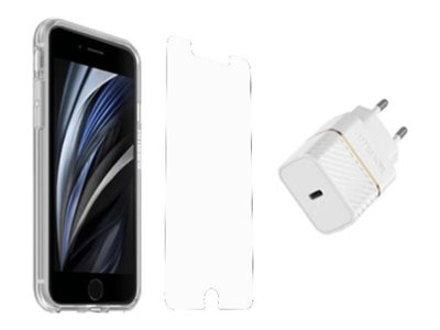 OtterBox React Series - Takakansi matkapuhelimelle - kirkas - sekä Trusted Glass -näytönsuoja ja Fast Charge Wall Charger USB-C 20W malleihin Apple iPhone 6, 6s, 7, 8, SE (2.sukupolvi), SE (3rd generation)