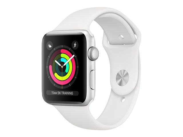Apple Watch Series 3 (GPS) - 42 mm - hopea alumiini - älykello kanssa urheiluranneke - fluoroelastomeeri - valkoinen ranteen koko: 140-210 mm - 8 Gt - Wi-Fi, Bluetooth - 32.3 g