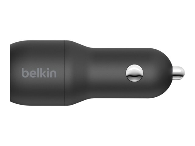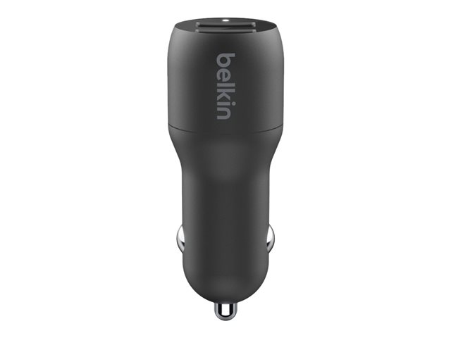 Belkin BoostCharge Dual Charger - Auton virtasovitin - 24 watti(a) - 4.8 A - 2 lähtöliittimet (USB) - johdossa: USB-C - musta