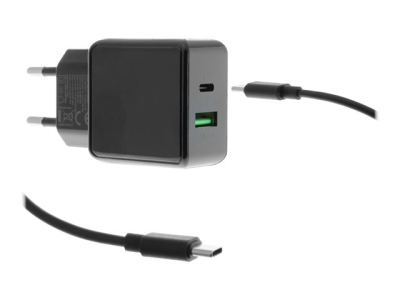 Insmat TRIDON Series Dual USB Travel Charger - Verkkosovitin - 20 watti(a) - 3 A (24 pin USB-C) - musta