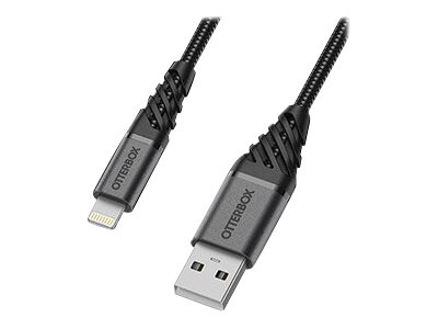 OtterBox Premium - Salamakaapeli - USB uros to Lightning uros - 1 m - tumma tuhkanmusta