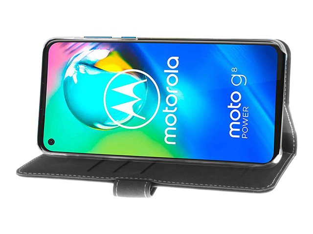 Insmat Exclusive Flip Case - Läppäkansi matkapuhelimelle - aito nahka, polyuretaani, polykarbonaatti - musta malleihin Motorola Moto G8 Power 650-2862