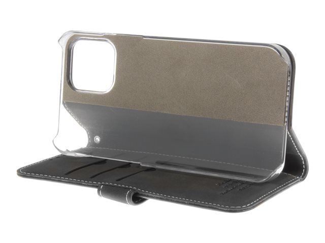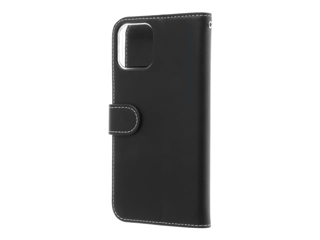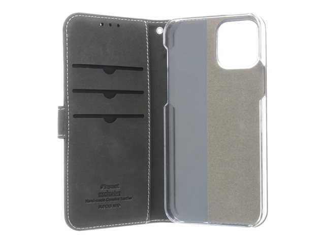 Insmat Exclusive Flip Case - Läppäkansi matkapuhelimelle - paperi, pahvi, nahka, polykarbonaatti, puuvilla, alumiinifolio - musta malleihin Apple iPhone 12, 12 Pro