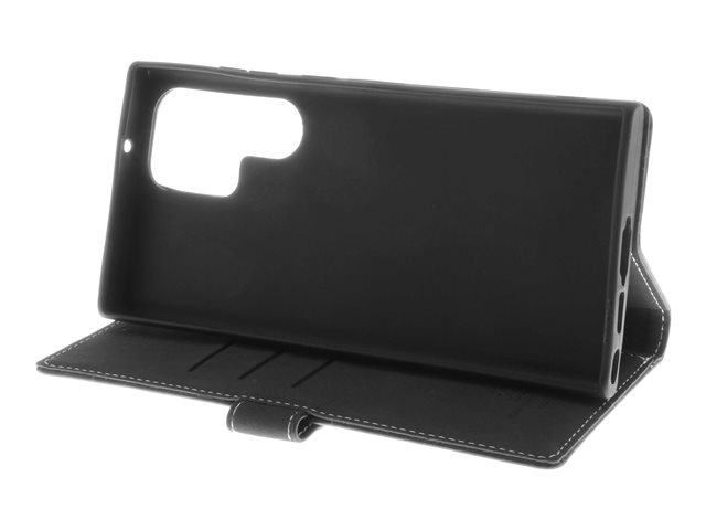 Insmat Exclusive - Läppäkansi matkapuhelimelle - aito nahka, paperi, polyuretaani, pahvi, puuvilla, alumiinifolio, pronssi, termoplastinen polyuretaani (TPU) - musta malleihin Samsung Galaxy S23 Ultra