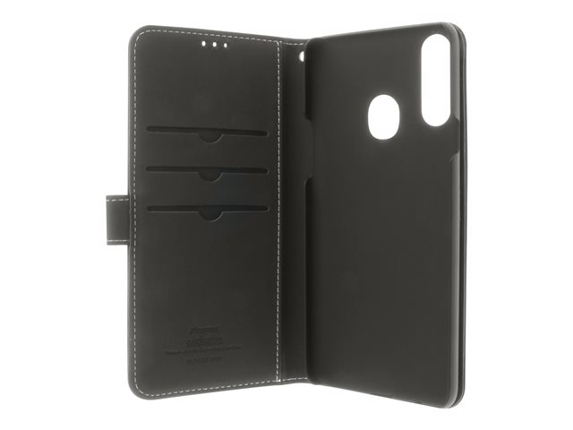 Insmat Exclusive - Läppäkansi matkapuhelimelle - aito nahka, paperi, pahvi, polykarbonaatti, alumiinifolio - musta malleihin Samsung Galaxy A20s