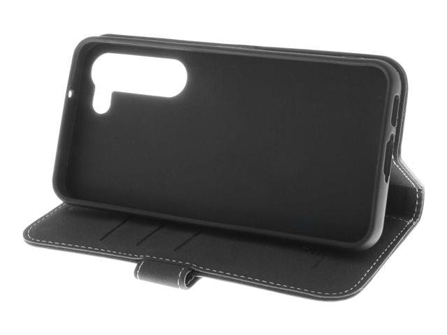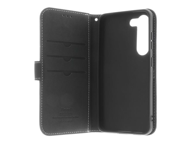Insmat Exclusive - Läppäkansi matkapuhelimelle - aito nahka, paperi, polyuretaani, pahvi, puuvilla, alumiinifolio, pronssi, termoplastinen polyuretaani (TPU) - musta malleihin Samsung Galaxy S23