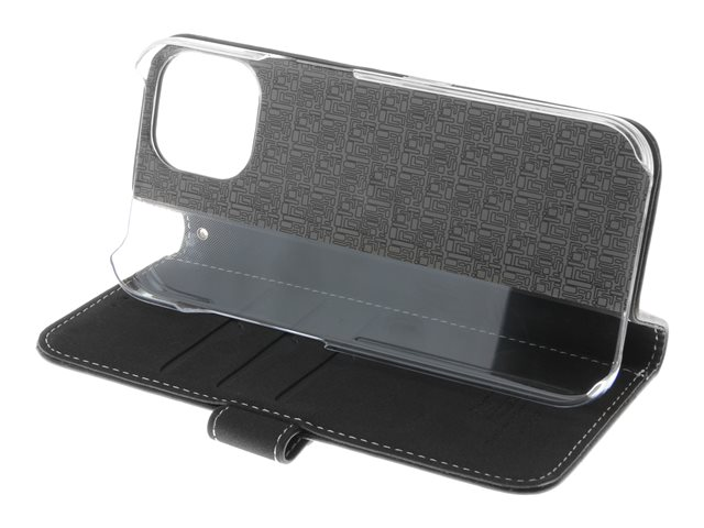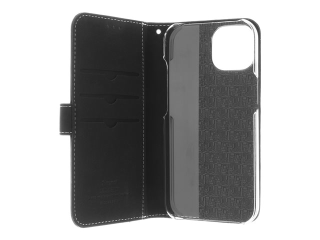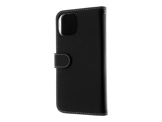 Insmat Exclusive - Läppäkansi matkapuhelimelle - aito nahka, polykarbonaatti, kartonki + paperi + alumiinifolio, puuvillaompeleet - musta malleihin Apple iPhone 15