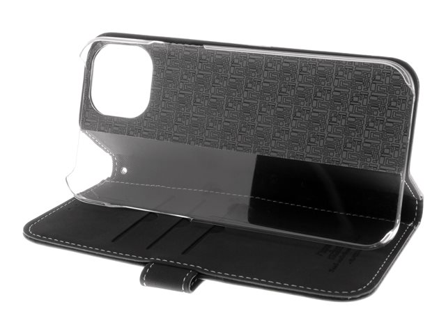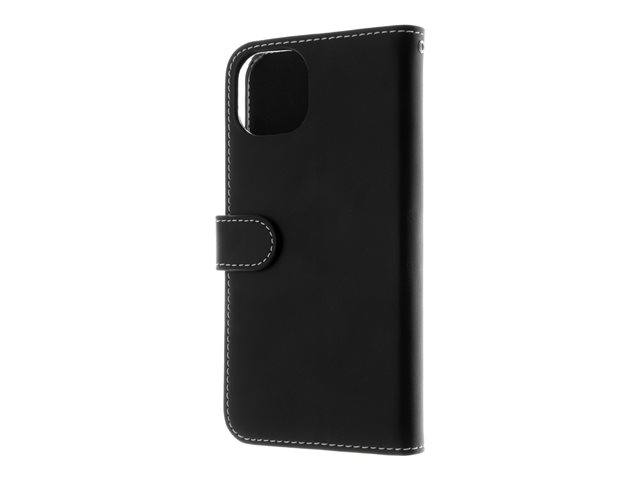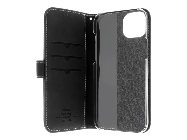 Insmat Exclusive - Läppäkansi matkapuhelimelle - aito nahka, polykarbonaatti, kartonki + paperi + alumiinifolio - musta malleihin Apple iPhone 15 Plus 650-3185