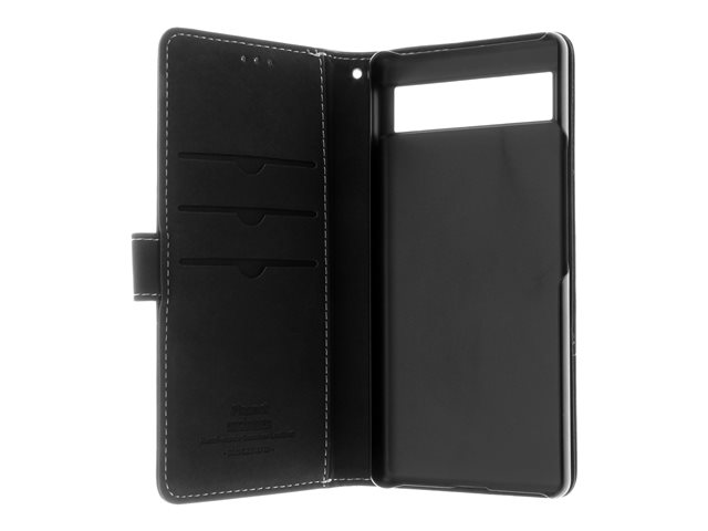 Insmat Exclusive - Läppäkansi matkapuhelimelle - nahka, polykarbonaatti, kartonki + paperi + alumiinifolio - musta malleihin Google Pixel 6a