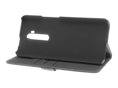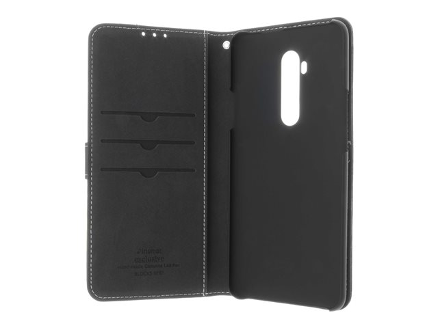 Insmat Exclusive Wallet - Läppäkansi matkapuhelimelle - polyuretaani, polykarbonaatti, puuvilla, pronssi - musta malleihin OnePlus 7T Pro 650-2821