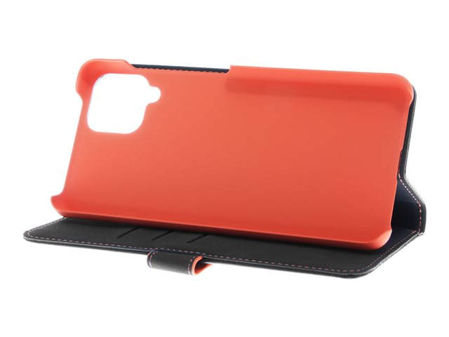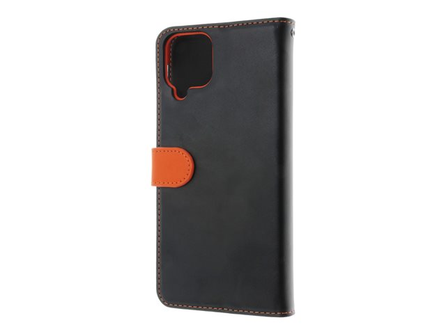 Insmat - Läppäkansi matkapuhelimelle - aito nahka, termoplastinen polyuretaani (TPU), polyuretaanipehmuste - musta, oranssi, galvanoitu pronssirengas malleihin Samsung Galaxy A12
