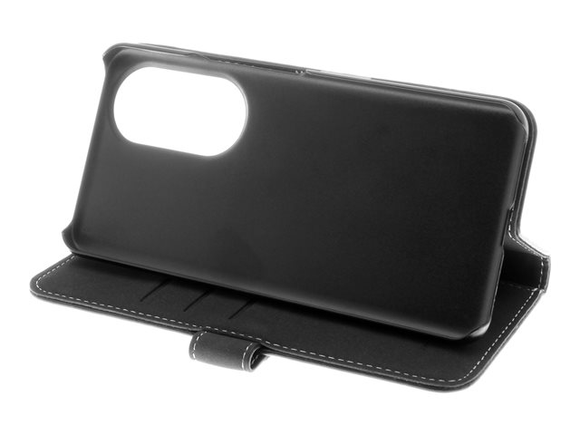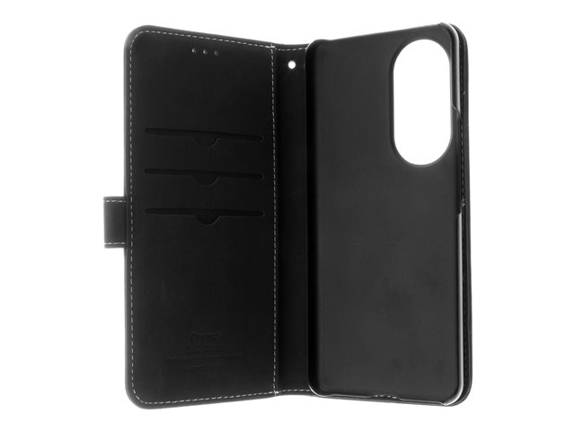 Insmat - Läppäkansi matkapuhelimelle - aito nahka, puuvillaompeleet, PC-taustalevy - musta malleihin Honor 90