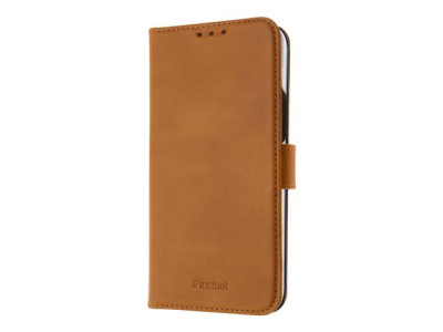 Insmat Premium FlipCase - Läppäkansi matkapuhelimelle - aito nahka, paperi, pahvi, polykarbonaatti, puuvilla, alumiinifolio - ruskea malleihin Apple iPhone 13 mini 650-3013