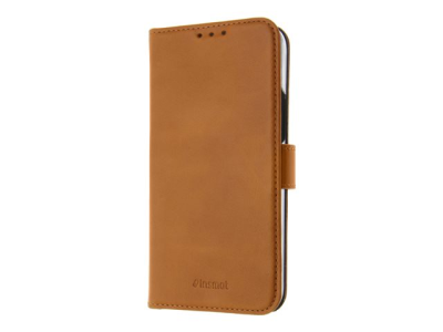 Insmat Premium FlipCase - Läppäkansi matkapuhelimelle - aito nahka, polykarbonaatti, puuvillaompeleet, pahvi + paperi - ruskea malleihin Apple iPhone 14