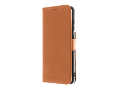 Insmat Premium - Läppäkansi matkapuhelimelle - aito nahka, termoplastinen polyuretaani (TPU), kartonki + paperi + alumiinifolio, puuvillaompeleet - ruskea malleihin Samsung Galaxy S21 FE 5G