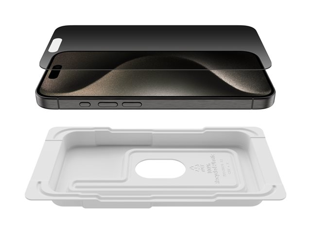 Belkin ScreenForce Pro - Näytön suojus tuotteelle matkapuhelin - 2.5D - lasi - yksityisyyssuodattimella - lasi malleihin Apple iPhone 15 Pro