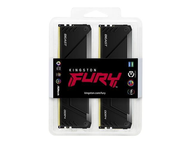 Kingston FURY Beast RGB - DDR4 - pakkaus - 64 Gt: 2 x 32 Gt - DIMM 288 nastaa - 3200 MHz / PC4-25600 - CL16 - 1.35 V - puskuroimaton - non-ECC - musta