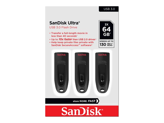 SanDisk Ultra - USB Flash-asema - 64 Gt - USB 3.0 (pakkaus sisältää 3)