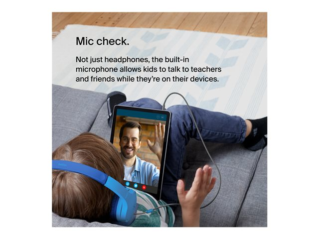 Belkin SoundForm Mini - Kuulokkeet mikrofonilla varustettu - korvien päällä - langallinen - 3,5 mm jakkiliitin - sininen