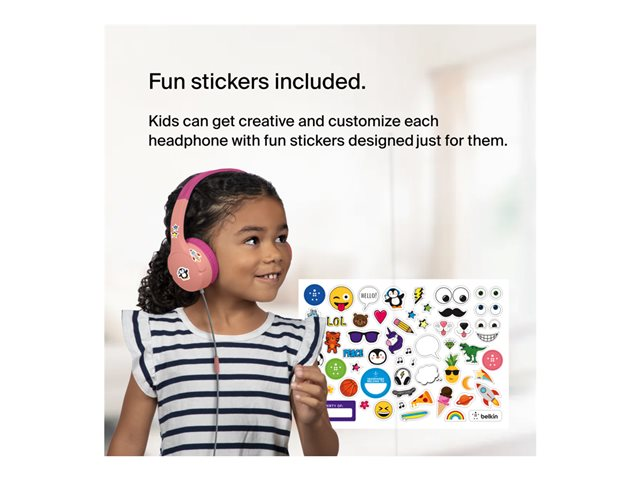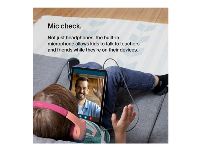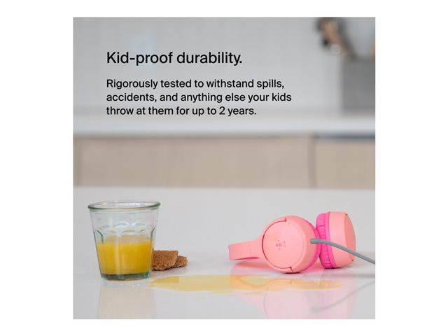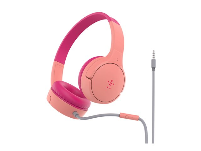 Belkin SoundForm Mini - Kuulokkeet mikrofonilla varustettu - korvien päällä - langallinen - 3,5 mm jakkiliitin - vaaleanpunainen