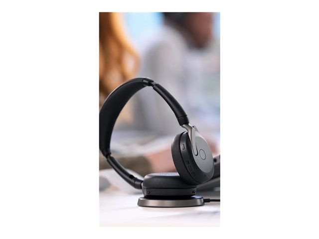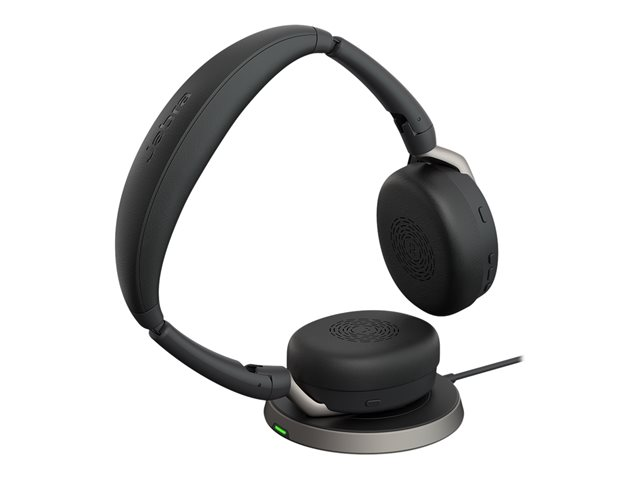 Jabra Evolve2 65 Flex UC Stereo - Kuulokkeet + mikrofoni - korvien päällä - Bluetooth - langaton - aktiivinen melunpoisto - USB-A - musta - sekä langaton latausalusta - optimoitu UC:lle