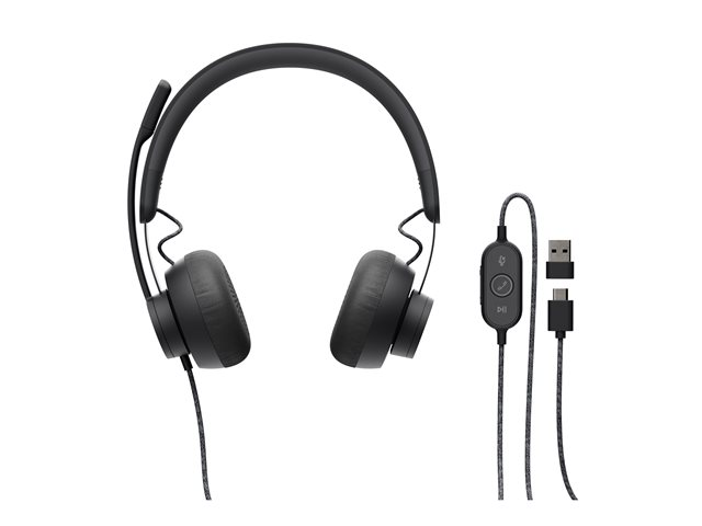 Logitech Zone Wired - Kuulokkeet + mikrofoni - korvien päällä - langallinen - USB-C - grafiitti