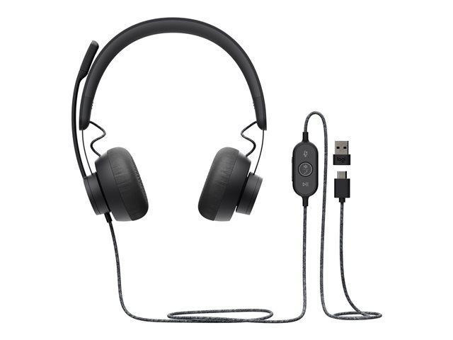 Logitech Zone Wired MSFT Teams - Kuulokkeet + mikrofoni - korvien päällä - langallinen - USB-C - grafiitti - sertifioitu Microsoft Teamsille 981-000870