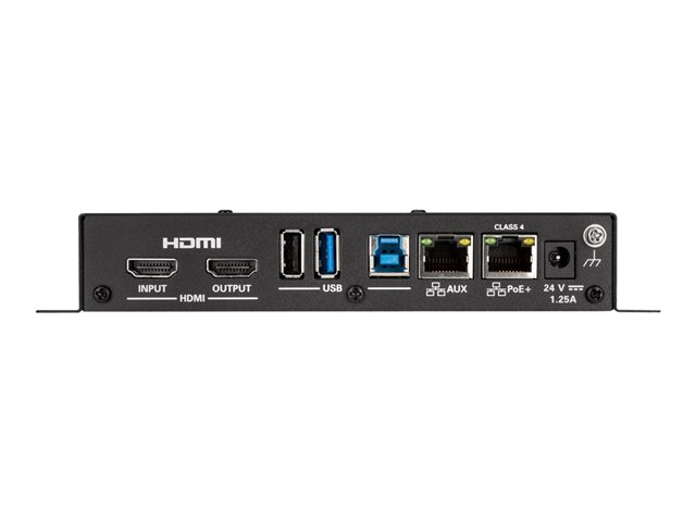| Päätteet | (1) x HDMI-tulo - 19-nastainen HDMI A-tyyppi (1) x HDMI ulostulo - 19-nastainen HDMI A-tyyppi (1) x USB 2.0 - 4-nastainen USB tyyppi A (1) x USB 3.0 - 9 pin USB Type A (1) x USB 3.0 - 9 pin USB Type B (2) x verkko - RJ-45 (1) x infrapunalähtö - 2-nastainen päätelohko (1) x sarja - 5-nastainen päätelohko (1) x tasapainotettu äänilähtö - 5-nastainen päätelohko - stereo |