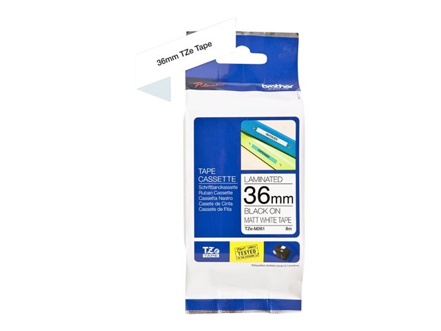 Brother TZe-M261 - Matta - itsekiinnittyvä - black on matte white - Rulla (3,6 cm x 8 m) 1 kasetti(a) laminaattinauha malleihin Brother PT-P950; P-Touch PT-3600, 9700, D800, E800, P900, P950; P-Touch Cube XP PT-910