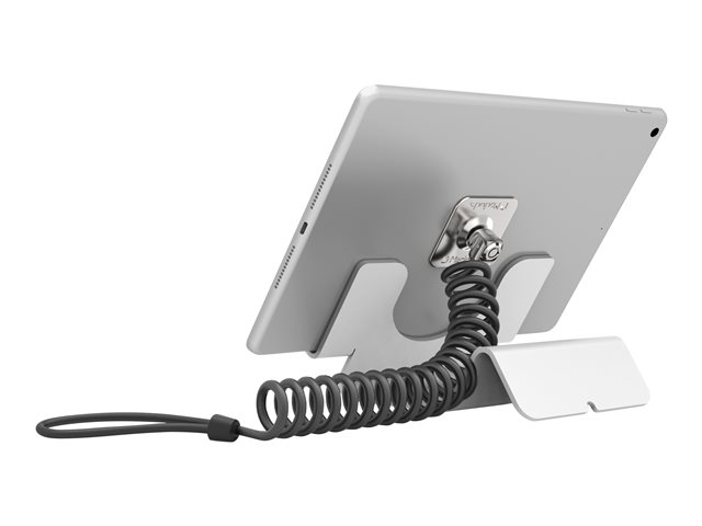 Compulocks Universal Tablet Holder with Coiled Cable Lock - Teline malleihin tabletti - lukittava - korkealaatuinen alumiini - valkoinen - työpöytä
