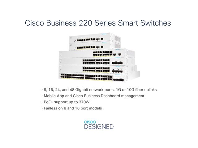 Cisco Business 220 Series CBS220-24FP-4G - Kytkin - smart - 24 x 10/100/1000 (PoE+) + 4 x Gigabit SFP (uplink) - telineeseen asennettava - PoE+ (382 W)