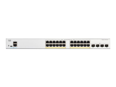| Liitännät | 24 x 10/100/1000 Base-T (PoE+) RJ-45 4 x 1000Base-X SFP 1 x konsoli RJ-45 1 x USB-C konsoli |