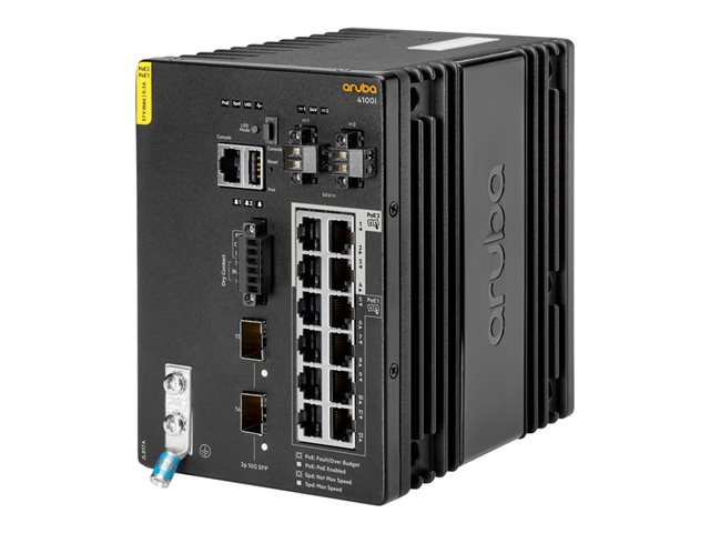 HPE Aruba 4100i - Kytkin - 8 x 10/100/1000 (PoE Class 4) + 4 x 10/100/1000 (PoE Class 6) + 2 x SFP+ - DIN-kiskoon kiinnitettävä - PoE Class 4 / PoE Class 6