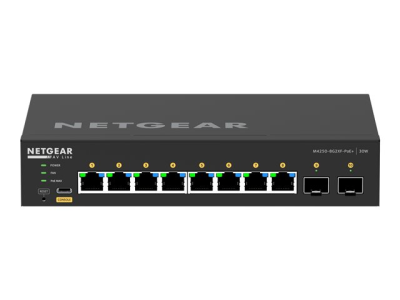 | Liitännät | 8 x 10/100/1000 Base-T RJ-45 8 porttia (PoE+) 2 x 10GBase-X SFP+ 1 x hallinta (Gigabit LAN) RJ-45 1 x konsoli RJ-45 1 x USB Type A 1 x console (USB) Type C |