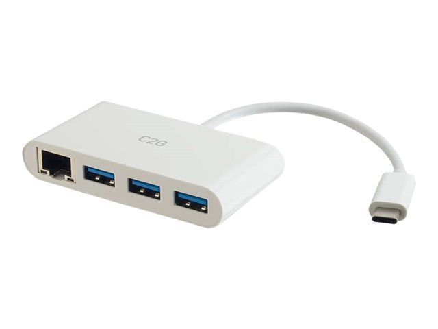 C2G USB C Ethernet and 3 Port USB Hub White - Hub - 3 Ports - Verkkosovitin - USB-C - Gigabit Ethernet x 1 + USB 3.0 x 3 - valkoinen