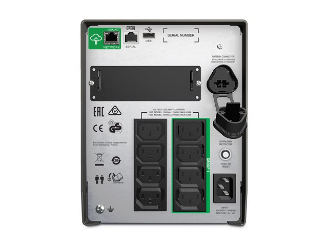 APC Smart-UPS SMT1000IC - UPS - Vaihtovirta 220/230/240 V - 700 watti(a) - 1000 VA - RS-232, USB - lähtöliittimet: 8 - musta - sekä APC SmartConnect