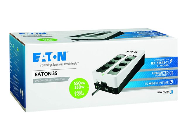 Eaton 3S 550 - UPS - Vaihtovirta 220-240 V - 330 watti(a) - 550 VA - 1-vaiheinen - USB - lähtöliittimet: 6